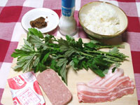 味噌が溶けたら卵を入れ、半熟になったら火を止め、ヨモギの葉を2、3枚